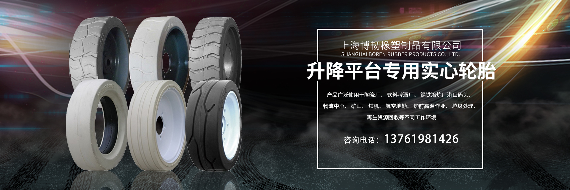 上海博韧橡塑制品有限公司是集工业轮胎、实心轮胎生产销售于一体